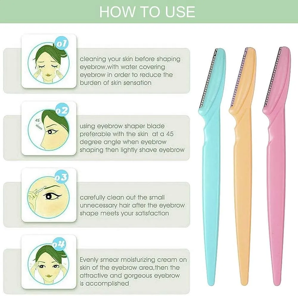 - Eyebrow Shaper 6Pack – This Eyebrow Razor removes the fine hairs of the eyebrow, neck and face as well as unnecessary hairs elsewhere